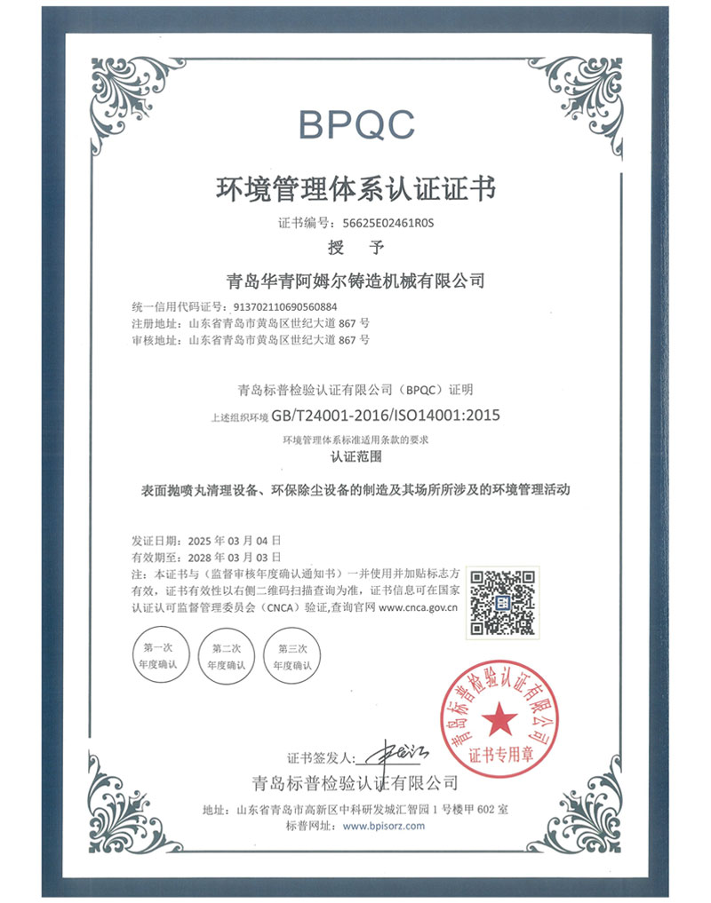 > BPQC环境管理体系认证证书 >