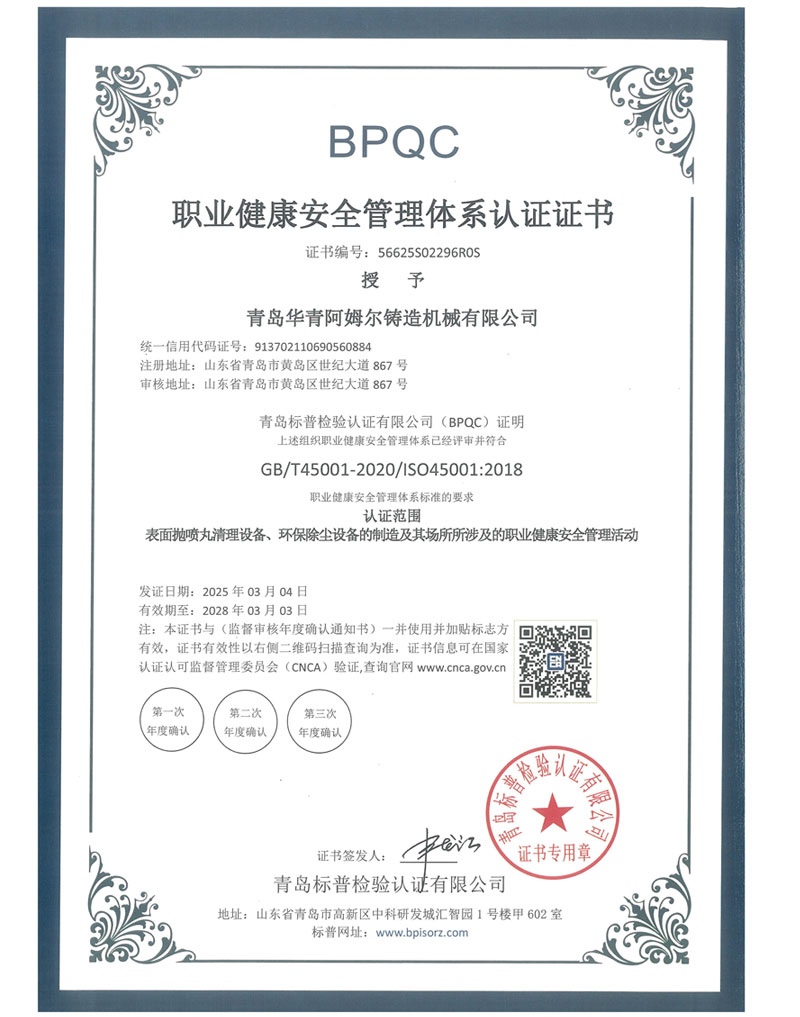 > BPQC职业健康安全管理体系认证证书 >