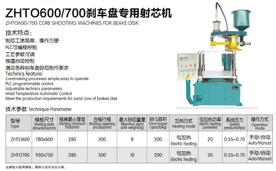 ZHTO600/700刹车盘专用射芯